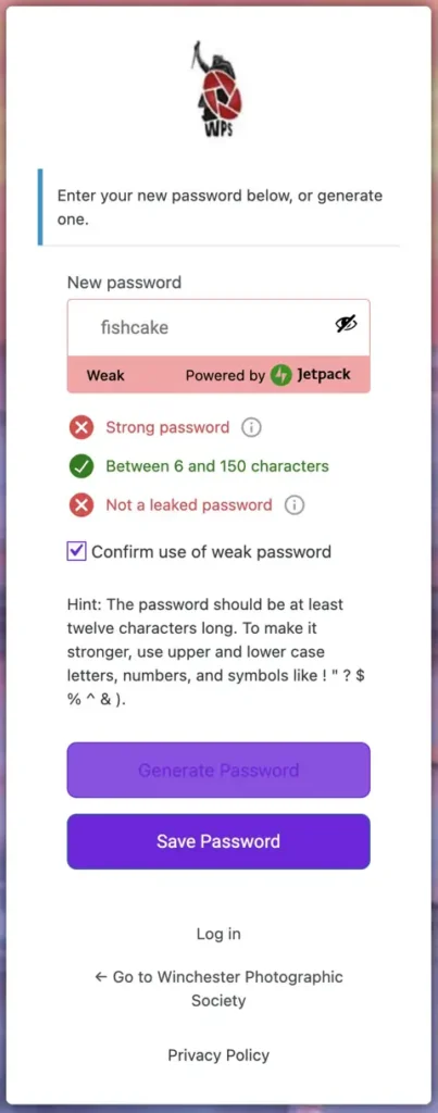 The system will suggest a secure but hard-to-remember password.
