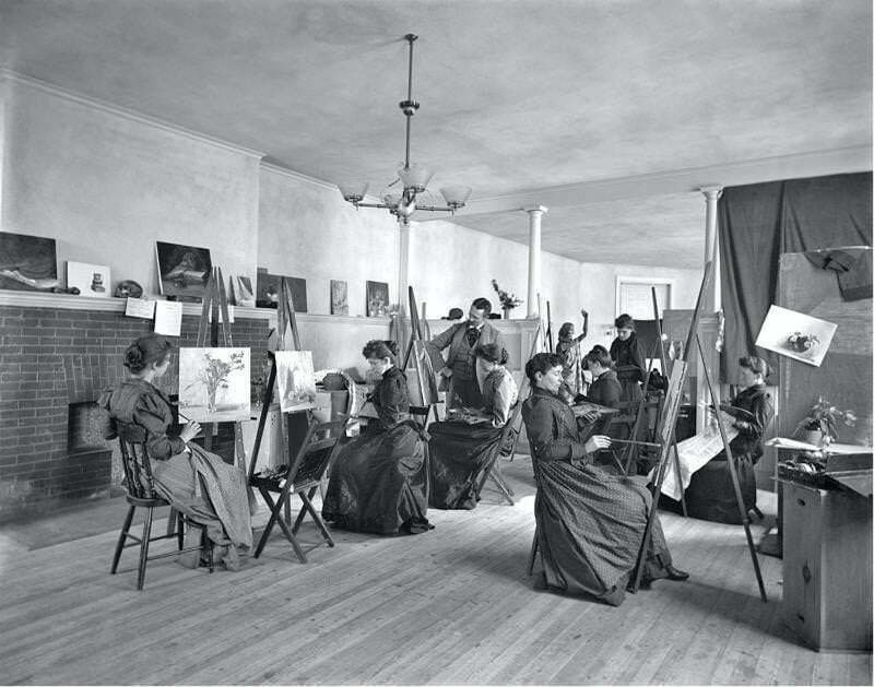 This image by Frances Johnston is of a group of women in an art class in the late 1800s and is the sort of record that does not figure amongst the works of male photographers at that time.
