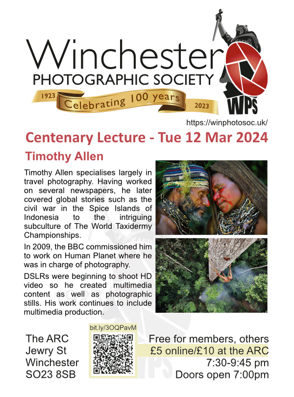 For more info and to book guest tickets go to ticketsource.co.uk/winchester-photographic-society