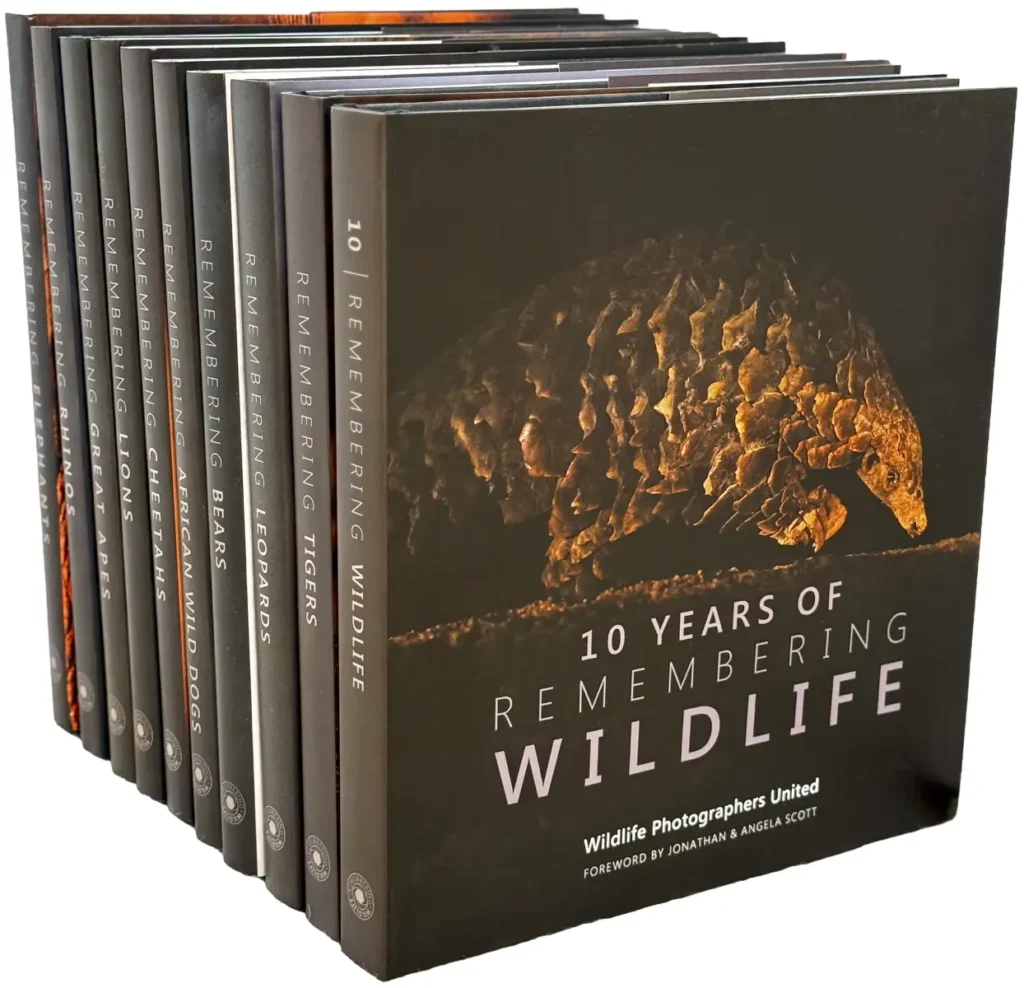 Determined to act, she launched Remembering Elephants, a collaborative book featuring donated images from leading photographers. It sold out in two months, sparking the Remembering Wildlife series.